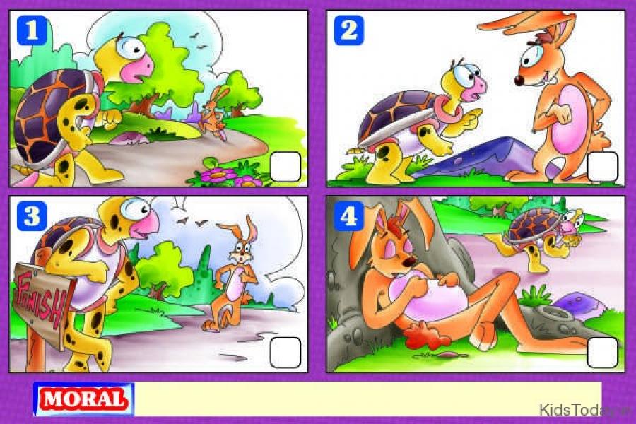 Once, a hare saw a tortoise walking slowly with a heavy shell on his back. The hare was very proud of himself and he asked the tortoise. “Shall we have a race?"